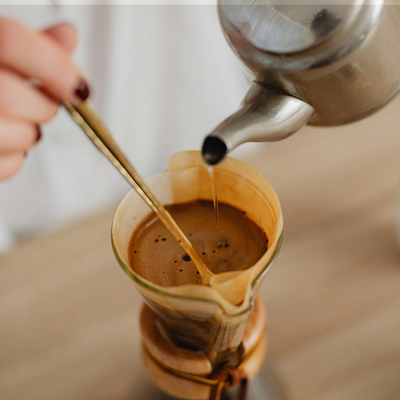 - Pour-over (drip, Chemex): Uses paper filters, removing oils and yielding a cleaner, lighter-bodied coffee.